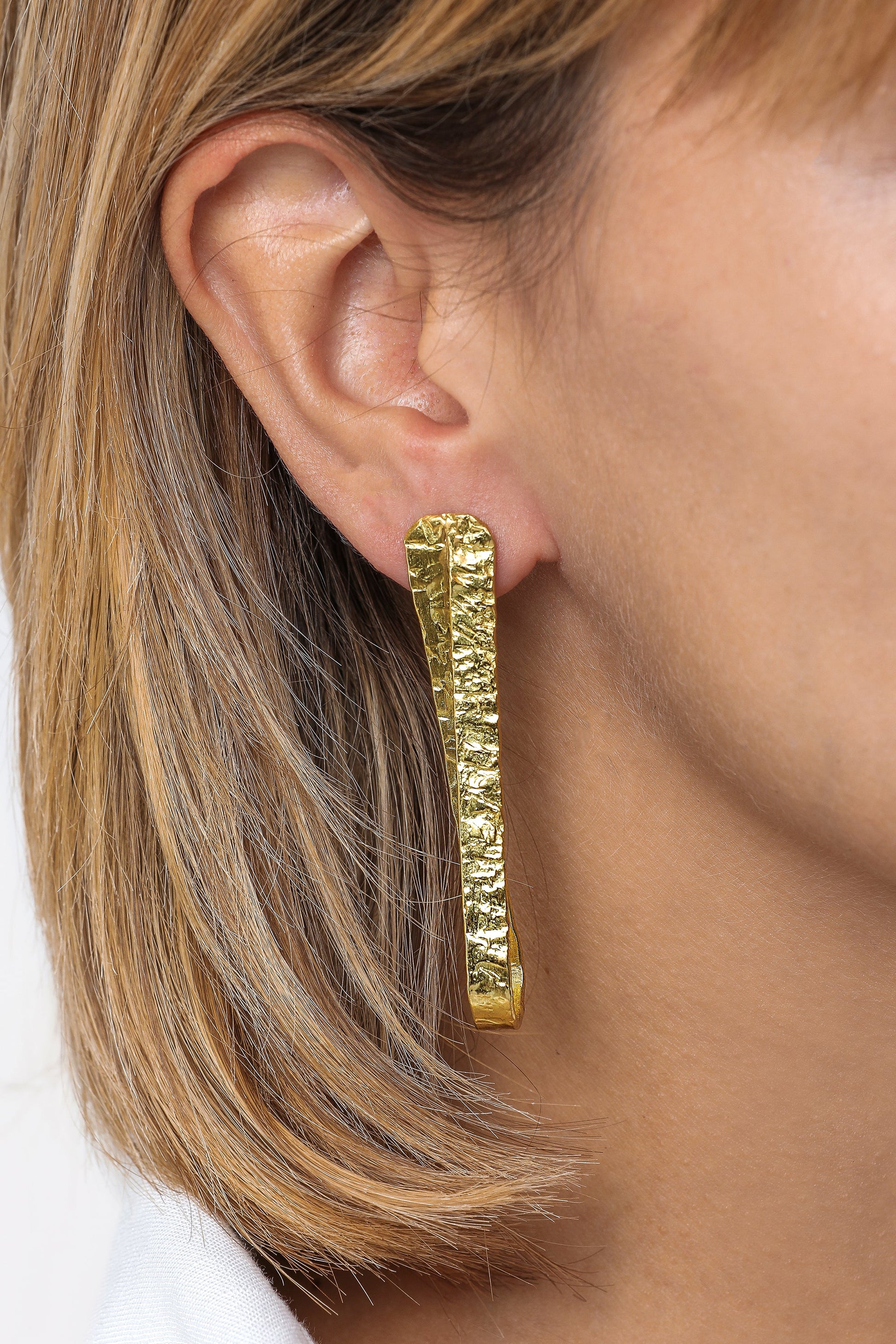 Naušnice Cappio predstavljaju elegantan i moderan dodatak koji upotpunjuje svaki outfit. Ručno rađene od visokokvalitetnog mesinga, ove naušnice se ističu svojim oblikom, donoseći dozu dinamike i stila u vašu kolekciju nakita.
