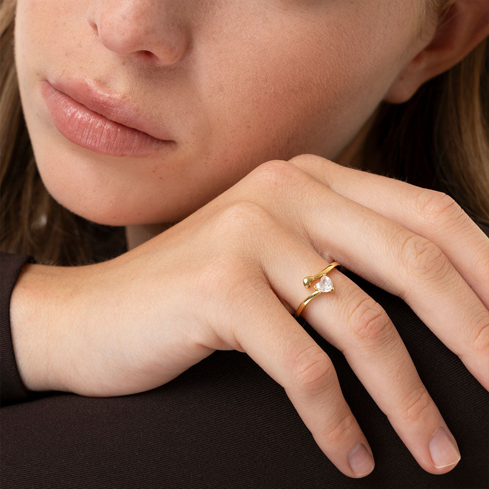Za ljubitelje klasike: očarajte se ovim prstenom sa oblicima srca. Ovaj jedinstveni komad nakita je savršen za specijalne prilike, bilo da se radi o ceremoniji ili kao poklon za one koji voli sofisticirane detalje.
